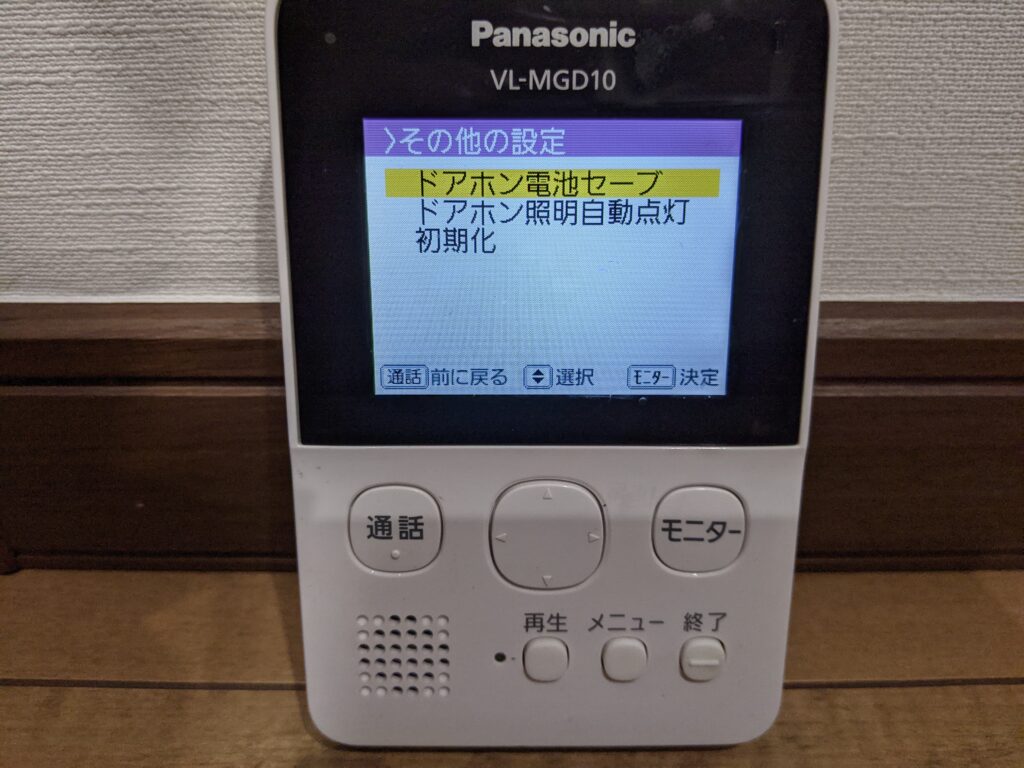 メニュー➡各種設定➡その他の設定➡ドアホン電池セーブ➡セーブ
